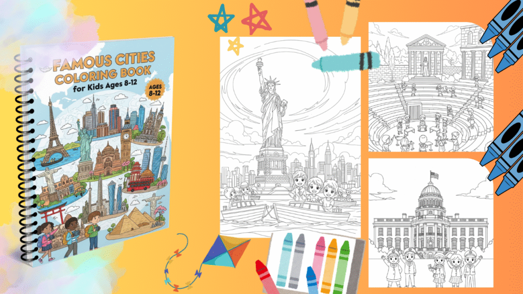 Embark on a fun and educational journey with the Famous Cities Coloring Book for Kids Ages 8–12 — packed with iconic landmarks, cultural wonders, and creative adventures that spark curiosity and learning.
